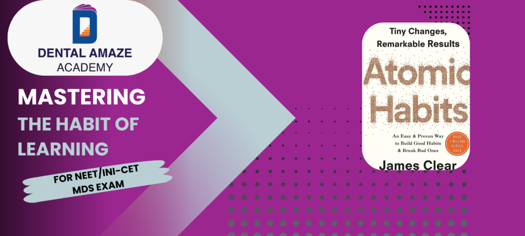 Embarking on the journey of preparing for NEET/INI-CET MDS can be daunting. Yet, the secret to success lies not just in what you learn, but in how you learn. Inspired by the principles from the bestselling book “Atomic Habits” by James Clear, this guide offers a transformative approach to building effective learning habits. The Importance of Habit Building: Habit building is more than a practice; it’s the foundation of consistent and effective learning. While preparing for competitive exams like NEET/INI-CET MDS, it’s essential to shift from a pattern of sporadic learning to a more disciplined and regular study routine.